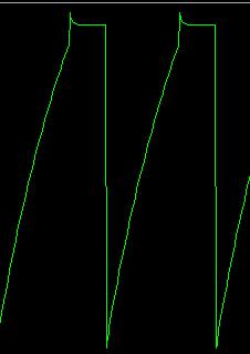 Towards the end of state1, where Q2 is in the process of turning on but hasn’t fully turned on yet, and at the same time, Q1, although conducting, is on the verge of turning off, the Q2 collector voltage begins falling that leads to the Q1 base voltage decreasing and Q1 begins cutting off, at the same time, the Q1 collector voltage begins rising, as the C1 right-hand plate is connected with the Q2 base, this change makes the Q2 conduct more. So, the initial change in input travels around the feedback loop, grows in an avalanche-like manner, until finally Q1 turns off and Q2 turns on. The waveform of the C1 right-hand negative plate (i.e. the Q2 base voltage waveform) is below: