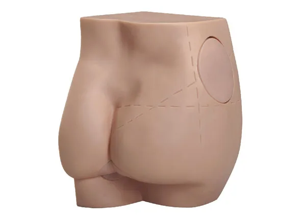 The model is simple and clear design, half of the buttocks area within the injection site to distinguish between the dotted line signs, injection module. Injection module can be injected, easy to remove, squeeze dry liquid, is the ideal student practice products.