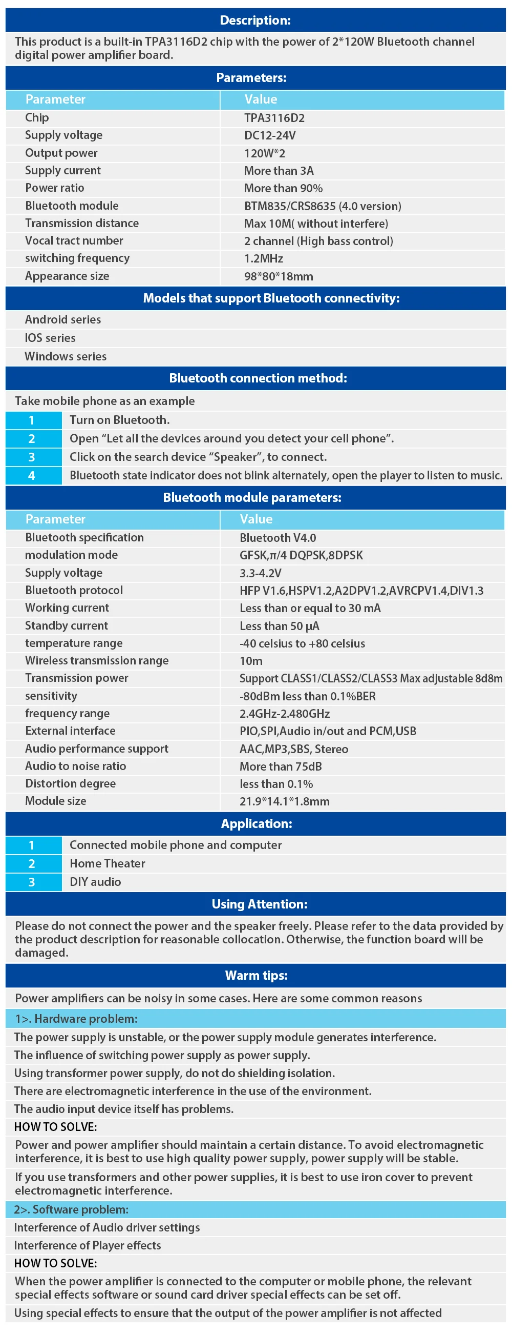 Product name is 2x120W Power Bluetooth Dual Channel Digital Amplifier Module TPA3116D2 XH-M548 Audio Amplifier...