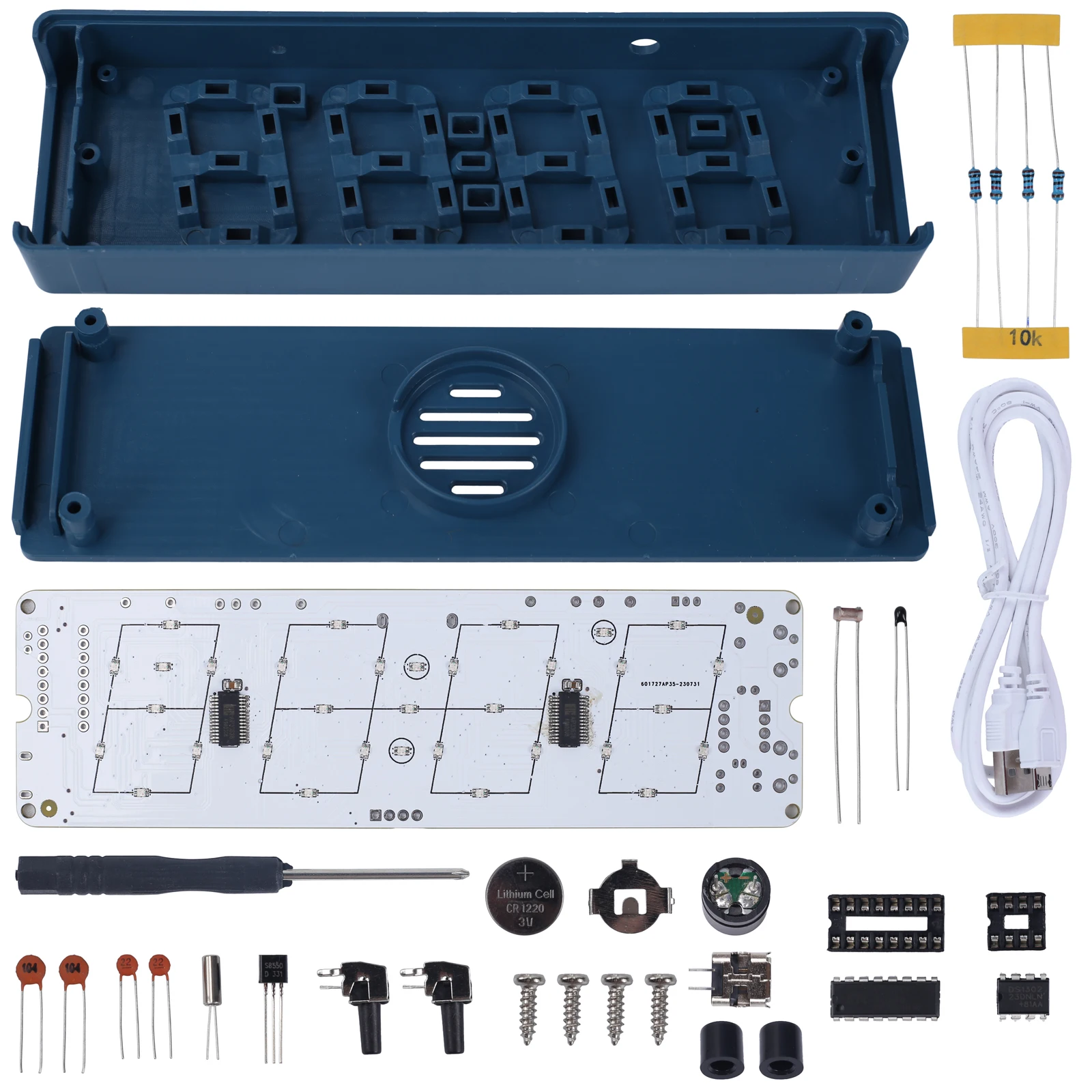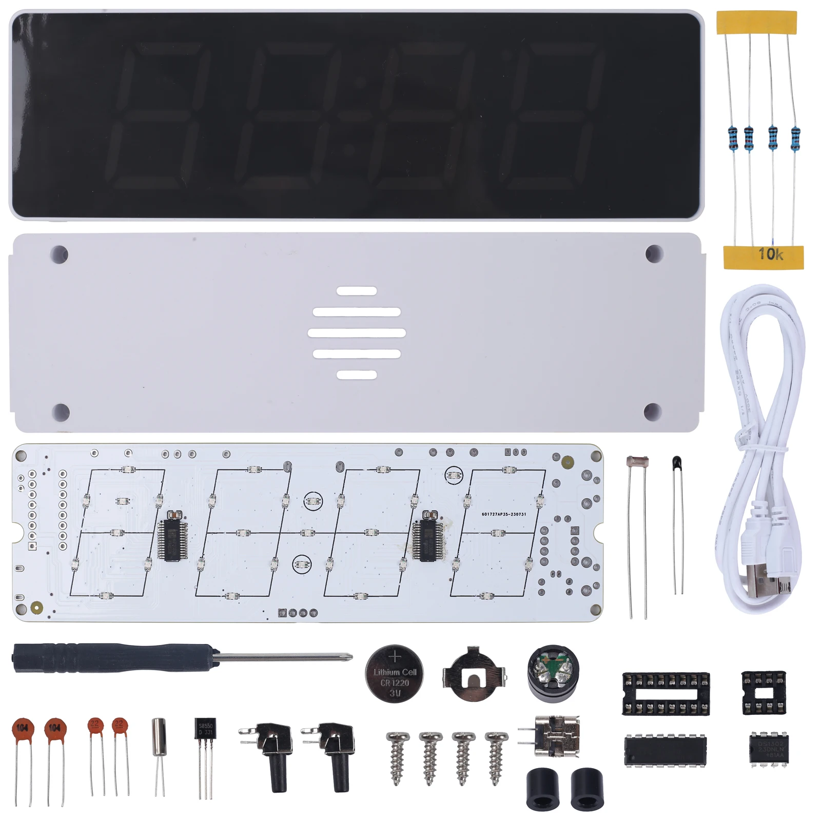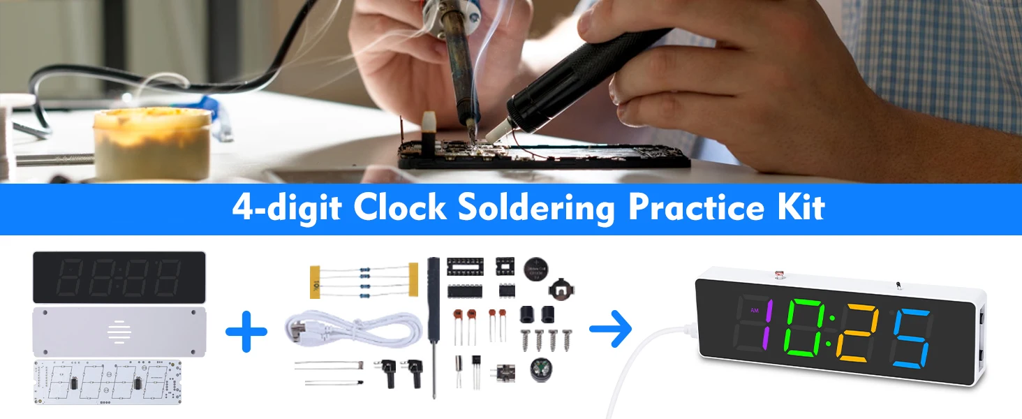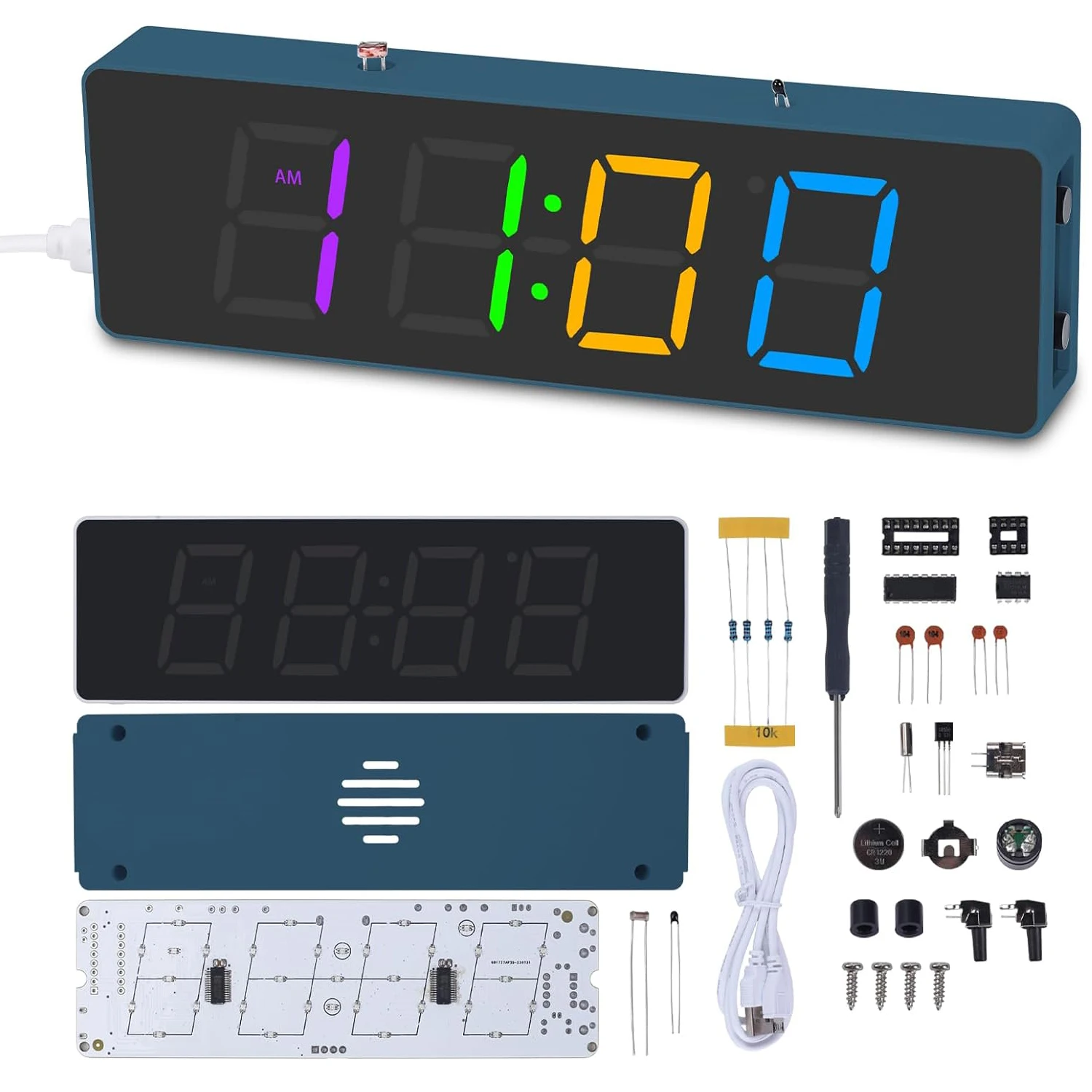 [DIY Digital Clock Kit]: The practical soldering kit are used to installed to a 4-Digit colorful LED Electronic Clock. Which can display current date, time, temperature in the real time, Alarm clock music. The finished project can also be used as desktop art accessories.