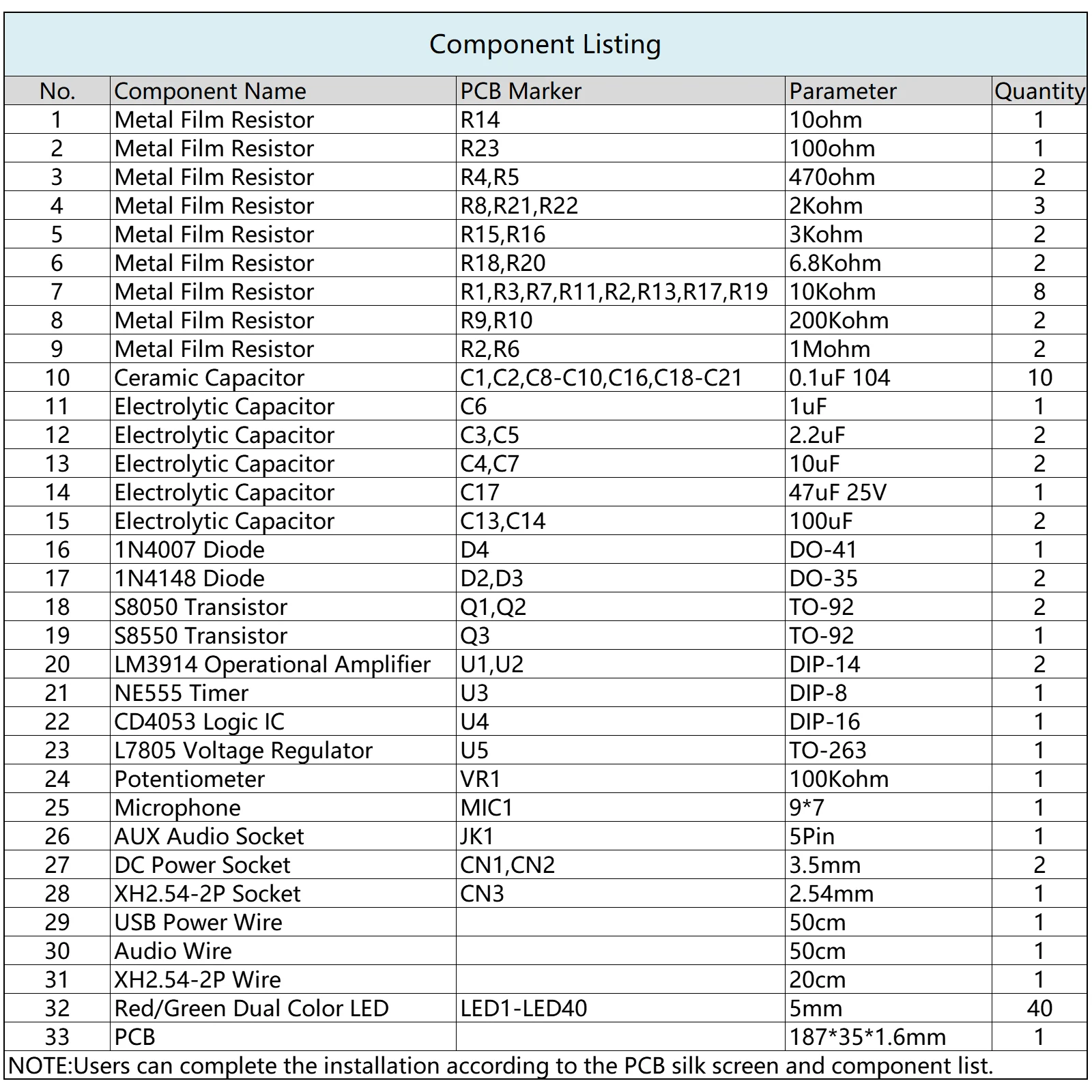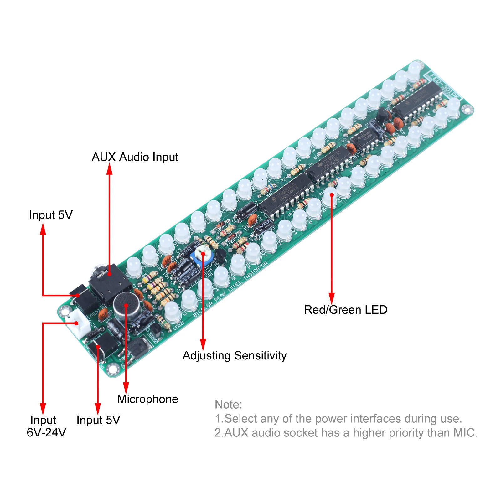 FED-301K is a Audio Spectrum Indicator DIY Kit.It can display in Red/Green according to the input audio signal from microphone or AUX audio socket.It can be used to display the intensity of audio.The number of LED displayed changes according to the intensity of the audio.