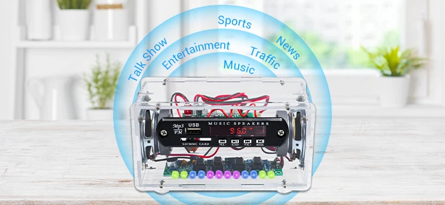 Our versatile electronics kit not only functions as a high-quality Bluetooth-Compatible Speaker but also doubles as an FM radio. The kit also support U-disk/TFCard to play music,saves on your phone battery.It's a DIY kit which comes with various components.