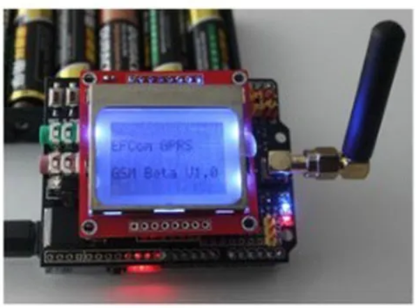 GPRS Shield can through the UART serial port using the configuration setting AT instruction, only needs to insert extend board into the for Aduino board, use AT commands to control the GPRS Shield , call, send text messages...... In addition, GPRS Shield support LCD5110 display (the default hair Bluetooth backlight, is inserted in the EFCom, below effect diagram) and serial port Keypad keyboard input.