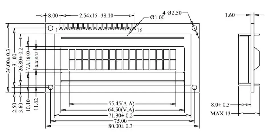 2. Dot Matrix: 16X2